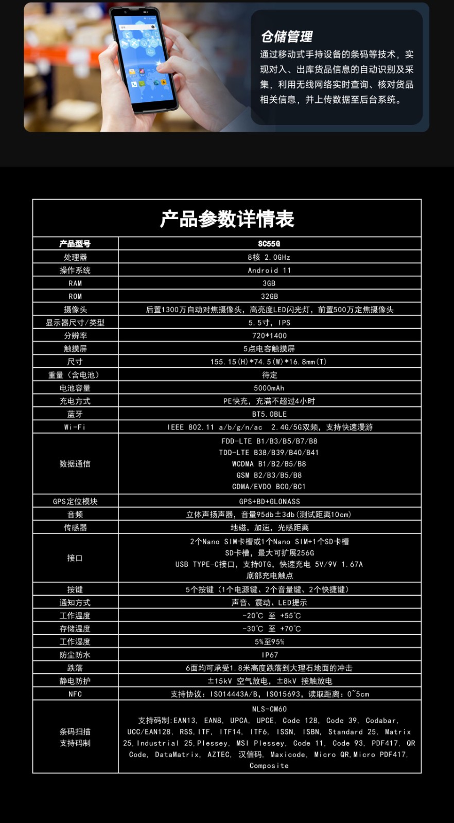 SC55G 全面屏条码手持终端SC55G